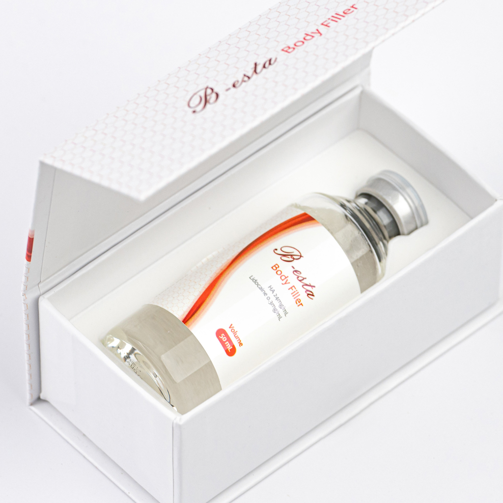 B-esta HA Body Filler premier choice for enhancing body volume. In a convenient 50mL vial, this advanced filler refines breasts, buttocks, calves, and legs with immediate, long-lasting results lasting up to 2 years.