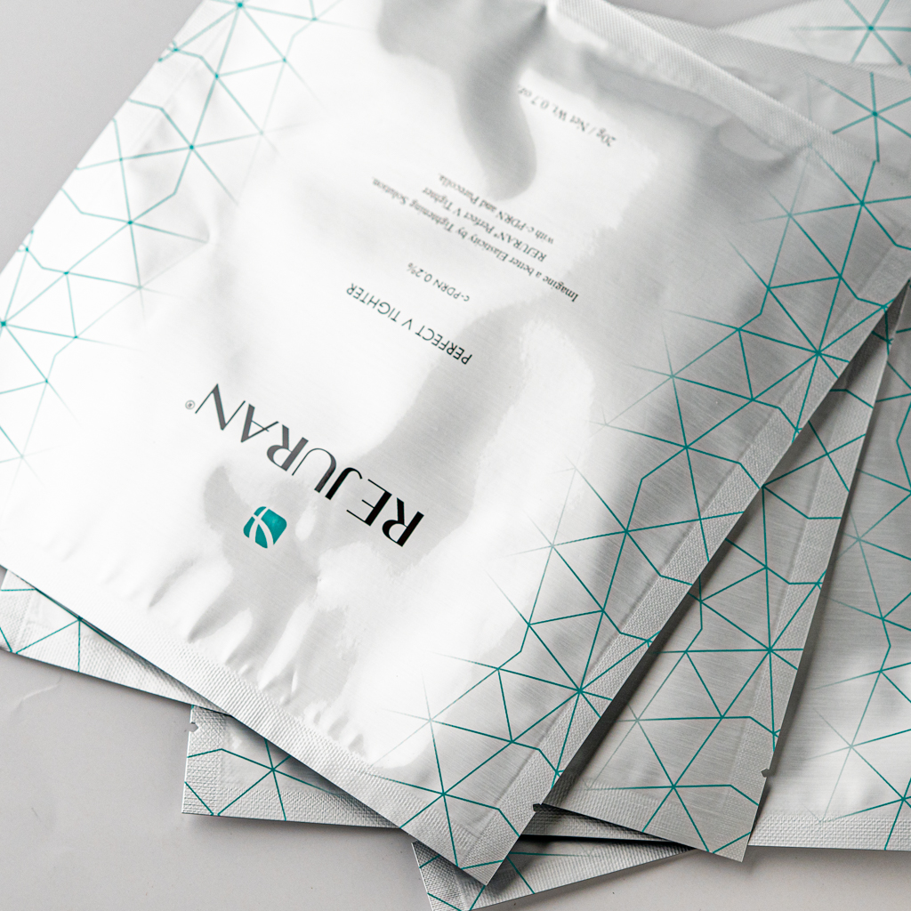Rejuran Perfect V Tighter is a two-sheet lifting mask that is designed to tighten the jawline. It contains Purecolla collagen and c-PDRN, which help to tighten the sagging skin, smooth out the texture, and enhance elasticity.